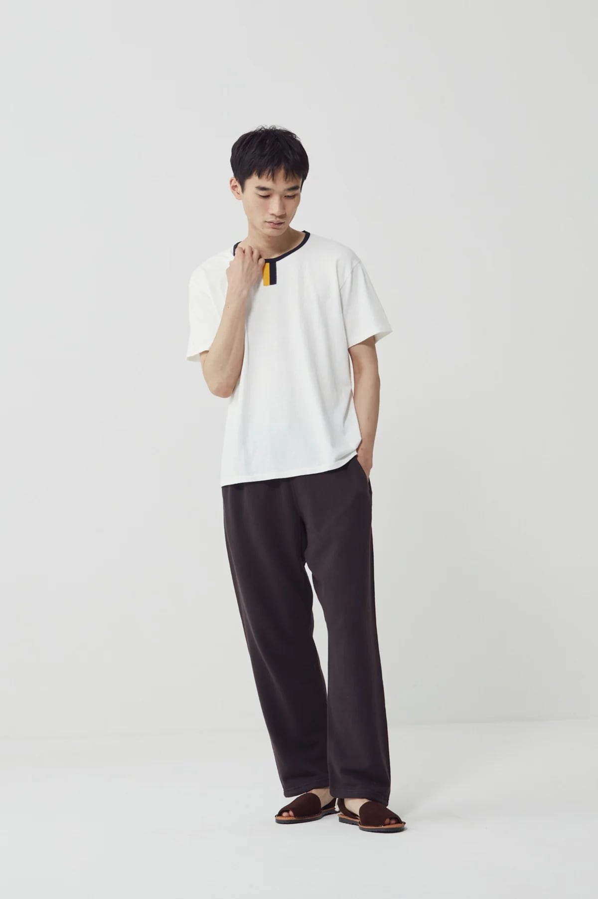 通年で使いやすい裏起毛してない裏毛を開発しました。フィルメランジェらしいムラ感のある表面と、ふっくらと優しい度目に仕立てた通年展開の裏毛です。柔らかな着心地と厚みなので、重ね着でも一枚でも活躍できるアイテムです。