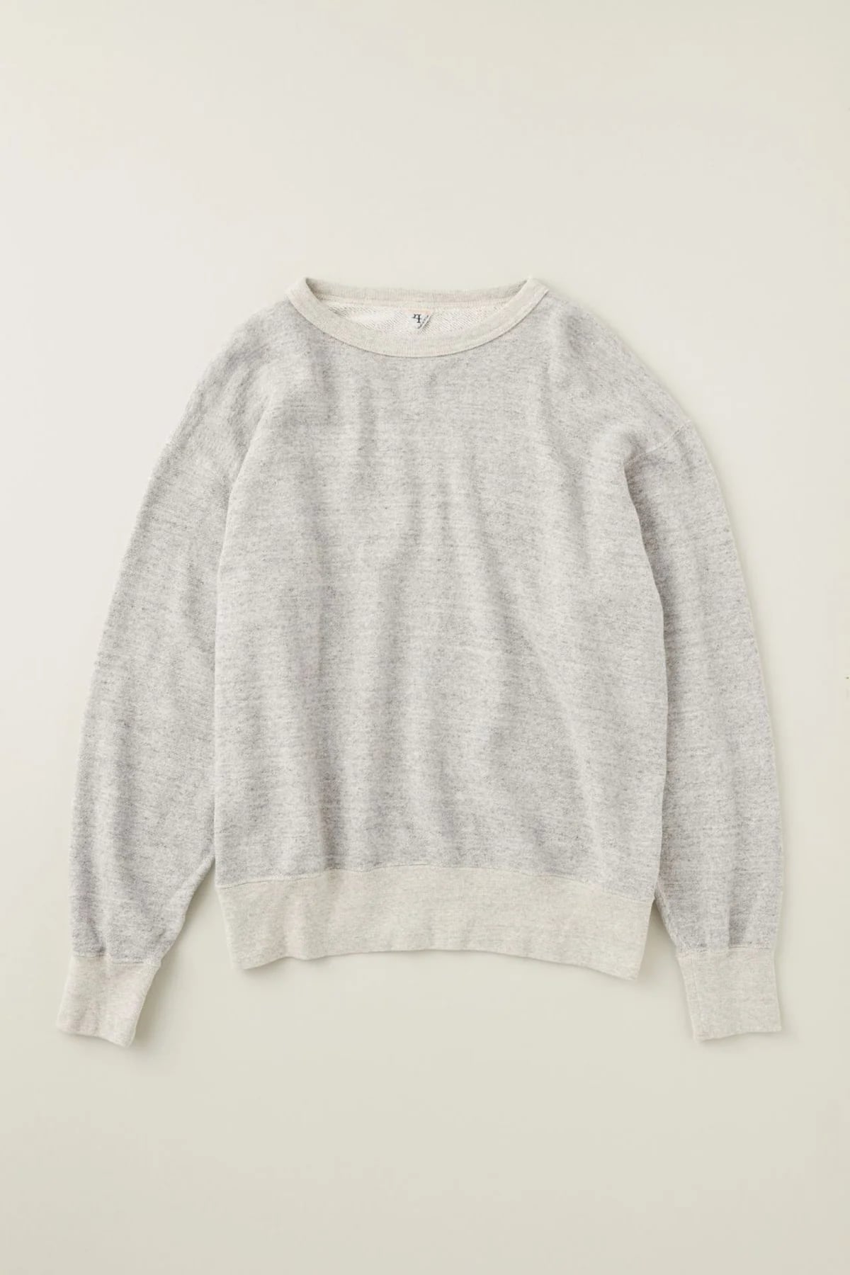 通年で使いやすい裏起毛してない裏毛を開発しました。フィルメランジェらしいムラ感のある表面と、ふっくらと優しい度目に仕立てた通年展開の裏毛です。柔らかな着心地と厚みなので、重ね着でも一枚でも活躍できるアイテムです。