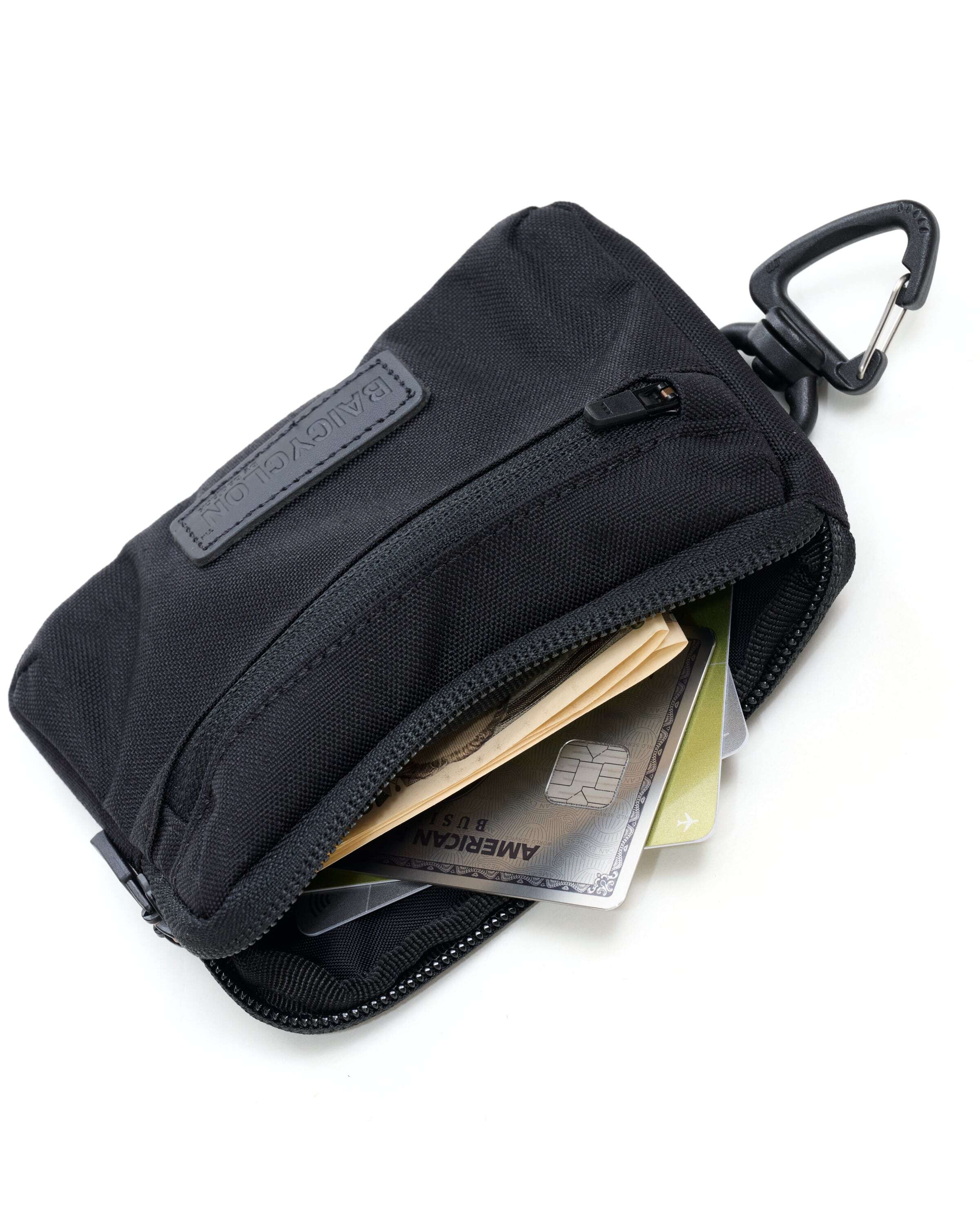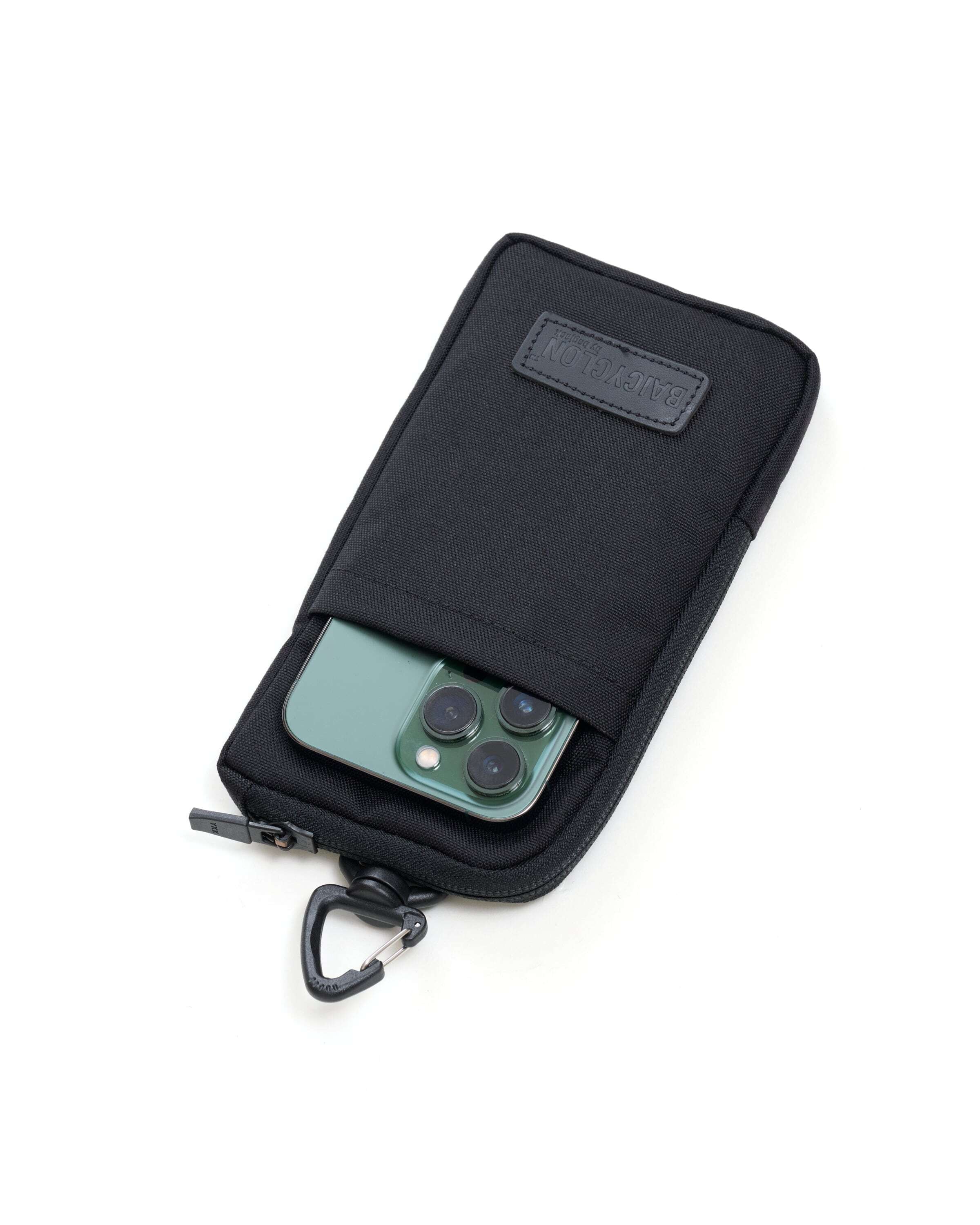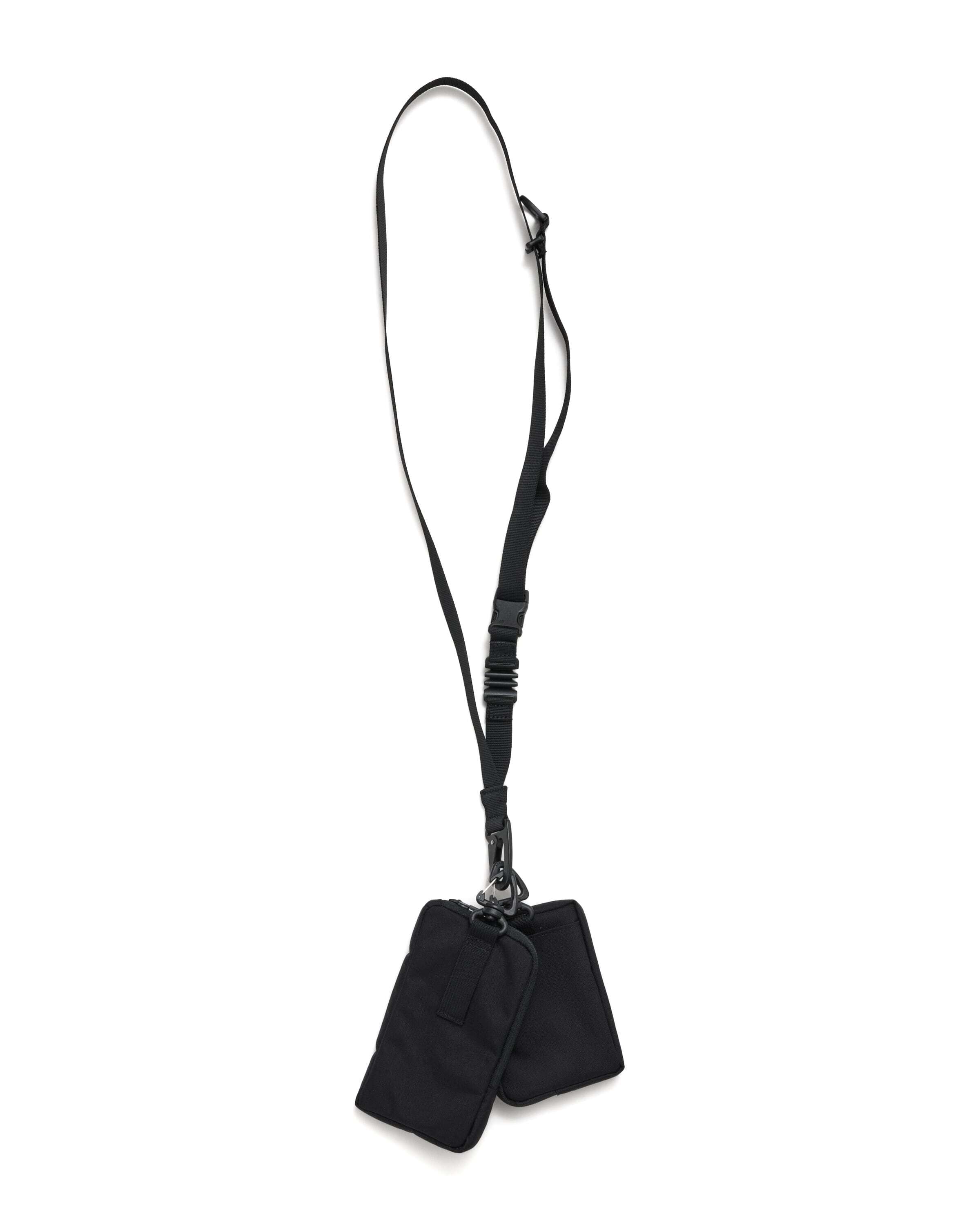 2つのポーチを組み合わせた構造になっており、スマートフォン、カード、紙幣、小銭などの必需品を整理して収納できます。ミニマルなサイズながら、日常で必要なアイテムを効率よく持ち運ぶことが可能です。