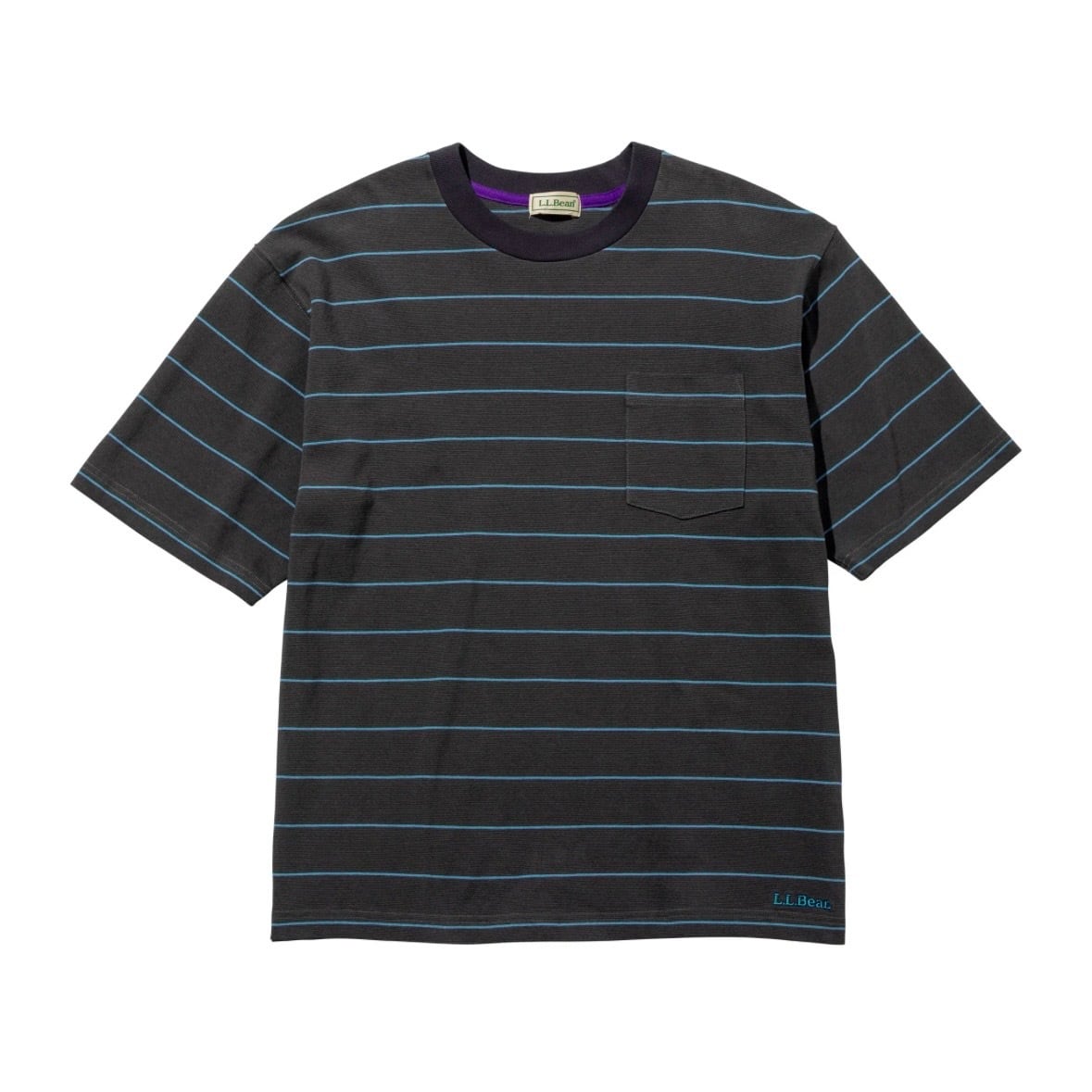 L.L.Bean JAPAN EDITION (エルエルビーン ジャパンエディション) Men's Union Short-Sleeve Striped Tee メンズ ユニオン・ショートスリーブ・ストライプ・ティ (Charcoal/Periwinkle)